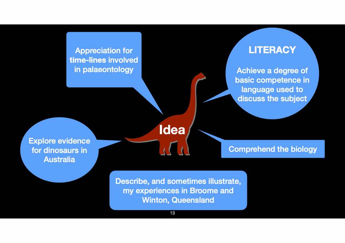 In 2010 David was delighted to discover the tracks of dinosaurs in the sandstone rocks close to Broome, visible particularly at low tide. Rather than being underwhelmed (as some were) by the barely recognisable imprints, David was prompted to try to learn more about “dinos” and shared his experience of visiting the Lark Quarry trackways --- reputed to be evidence of a “dinosaur stampede” in central Queensland.